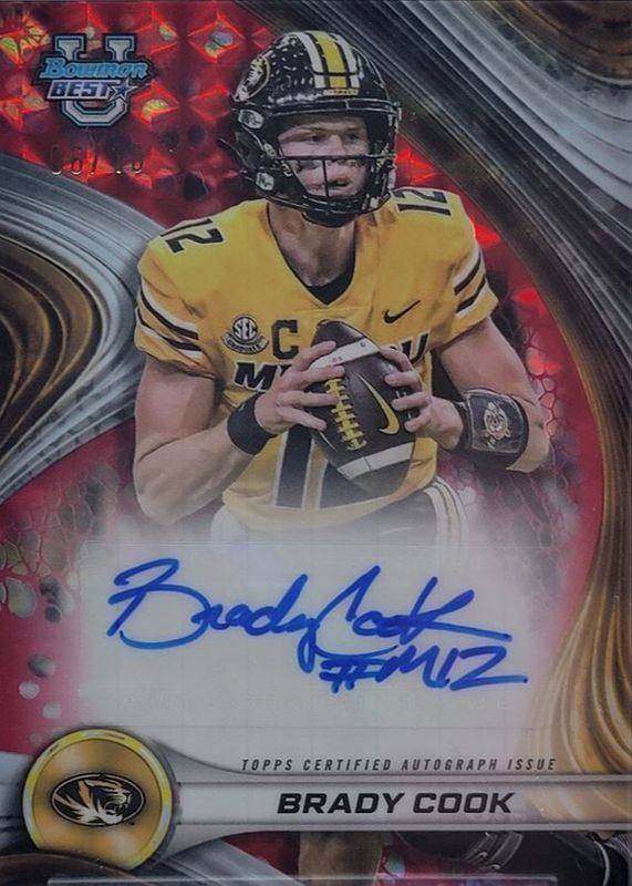 Brady Cook 2024 Bowman Best University #BOA-BC Best of 2024 Autographs - Red Geometric Refractor /10 RAW Price Guide