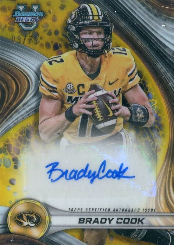 Best Prices Available For Sale of Brady Cook 2024 Bowman Best University #BOA-BC Best of 2024 Autographs - Yellow Refractor /75