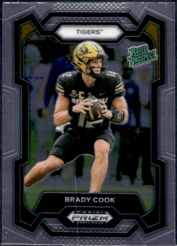 The Brady Cook 2024 Prizm Draft Picks #187 Base card is 1 of 43 Brady Cook's card variations in the 2024 Prizm Draft Picks set being tracked by Sports Card Investor, including Green, Purple Wave, Red Ice, Ruby Wave, and Silver.