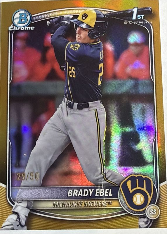 The Brady Ebel 2025 Bowman Draft #BDC-194 Chrome - Gold Refractor /50 (1st) card in Raw condition has not changed in price in the last 30 days and was last sold for $45.44 .