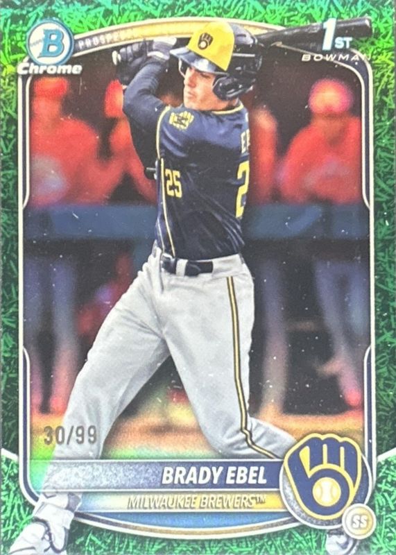 2025 Bowman Draft Brady Ebel Chrome Green Grass Refractor 1st #/99 Brewers