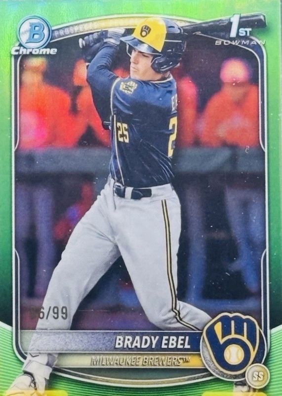 2025 Bowman Draft Brady Ebel Chrome Green Refractor 1st Prospect #/99 Brewers