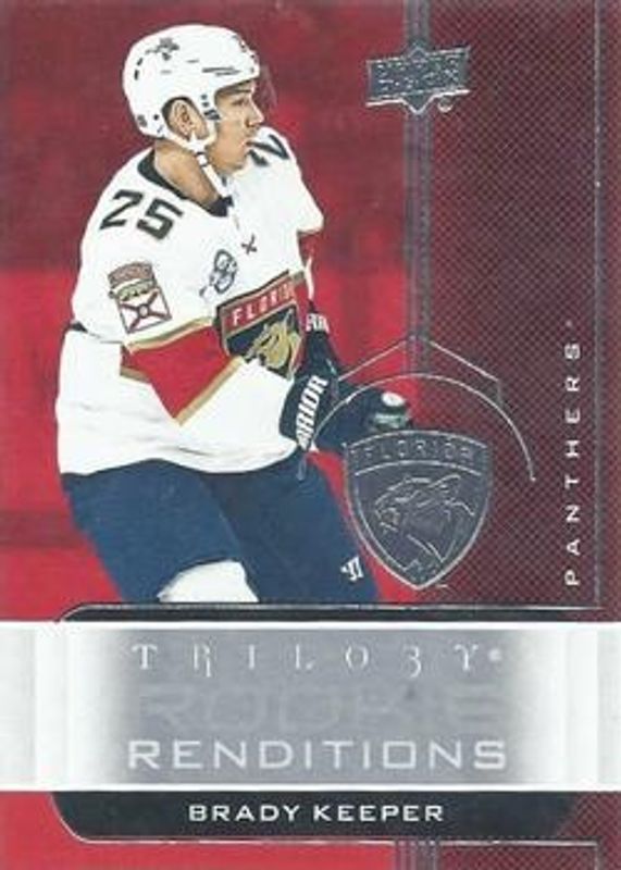 The Brady Keeper 2019 Upper Deck Trilogy #RR-4 Rookie Renditions card is 1 of 7 Brady Keeper's card variations in the 2019 Upper Deck Trilogy set being tracked by Sports Card Investor, including Rookie Renditions Gold Foil Auto, Rookie Renditions Silver Foil Jersey, Rookie Renditions Red Foil /799, Rookie Renditions Blue Foil /399, and Rookie Renditions Gold Foil Auto Patch /49.