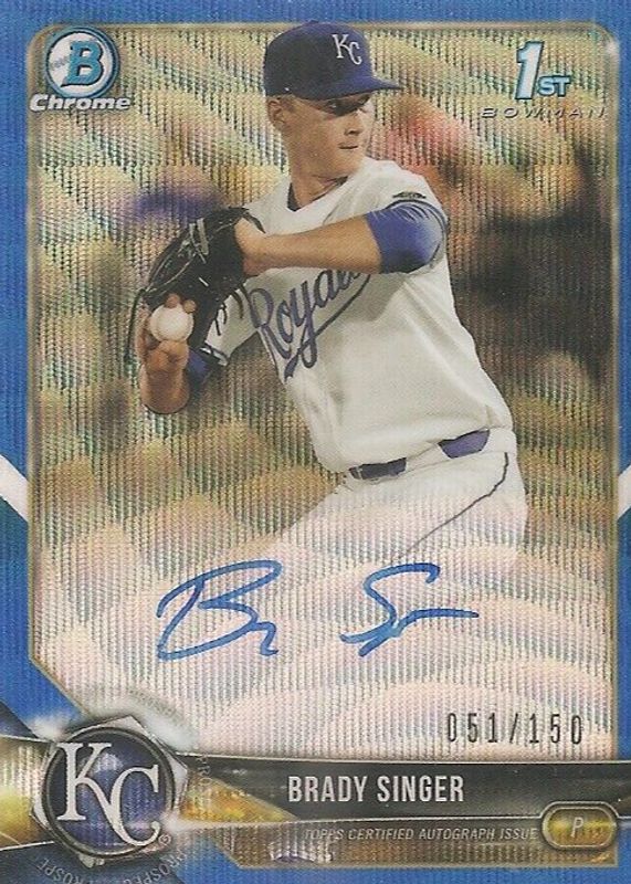 2018 Bowman Chrome Draft Brady Singer 1st Blue Refractor Auto #/150 Royals D725
