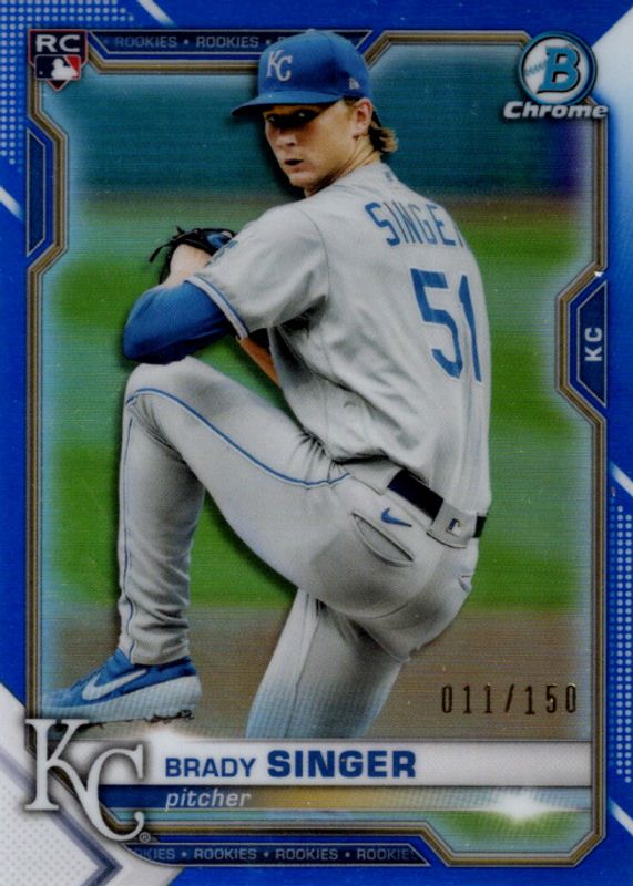 2021 Bowman Chrome BRADY SINGER RC Blue Refractor # /150 Kansas City Royals #43