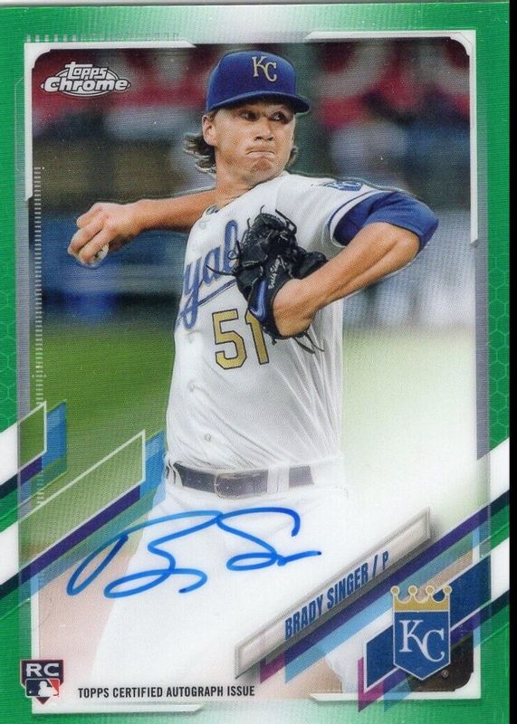 2021 Topps Chrome Brady Singer #RA-BS Green Refractor Rookie Auto #80/99 Royals