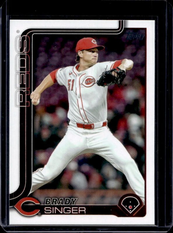 The Brady Singer 2025 Topps Update #US344 Base card is 1 of 57 Brady Singer's card variations in the 2025 Topps Update set being tracked by Sports Card Investor, including Aqua Holo Foil, Aqua Rainbow Foil, Diamante Foil, Holiday, and Holiday Ghost.