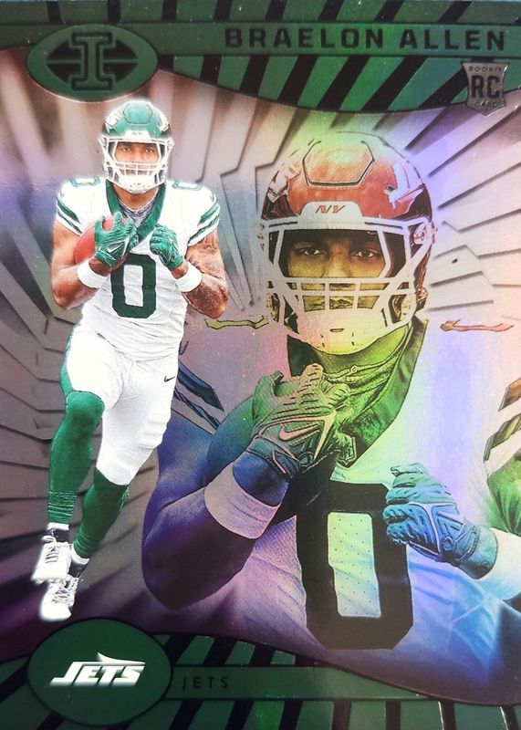 This card is 1 of 25 Braelon Allen's card variations in the 2024 Illusions set being tracked by Sports Card Investor, including Base, Trophy Collection Dots, Trophy Collection Emerald, Trophy Collection Galactic, and Trophy Collection Orange.