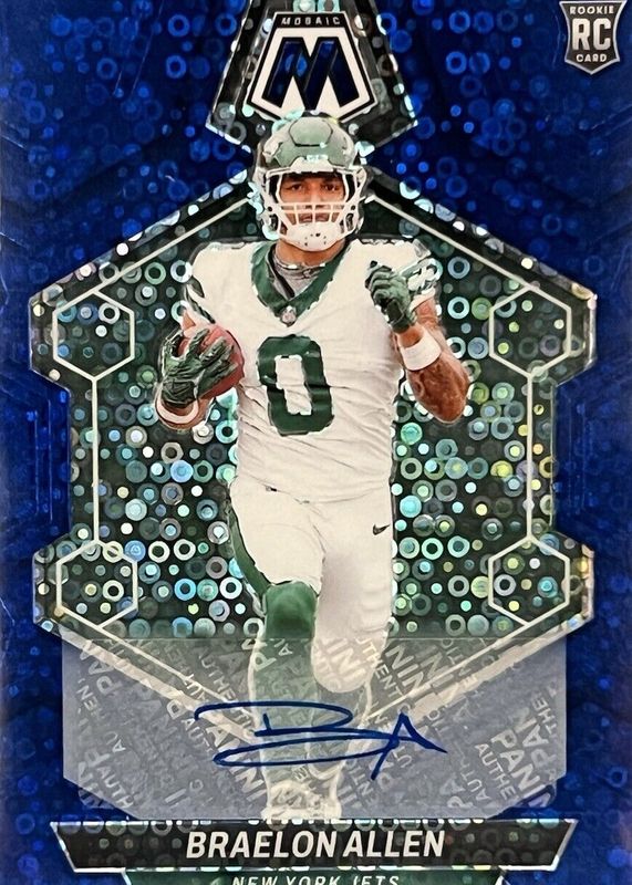 Auctions Ending Soon for Braelon Allen 2024 Mosaic #389 Rookie Autographs - No Huddle Blue RAW