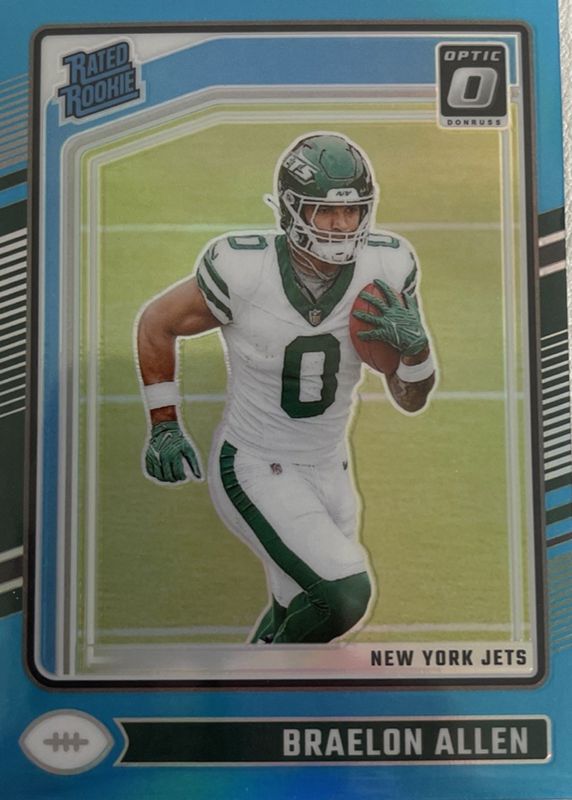 BRAELON ALLEN 2024 DONRUSS OPTIC #211 RATED ROOKIE AQUA PRIZM RC /299 JETS