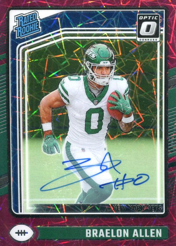 2024 Panini Donruss Optic Pink Velocity Rookie Auto #211 Braelon Allen /50 Jets
