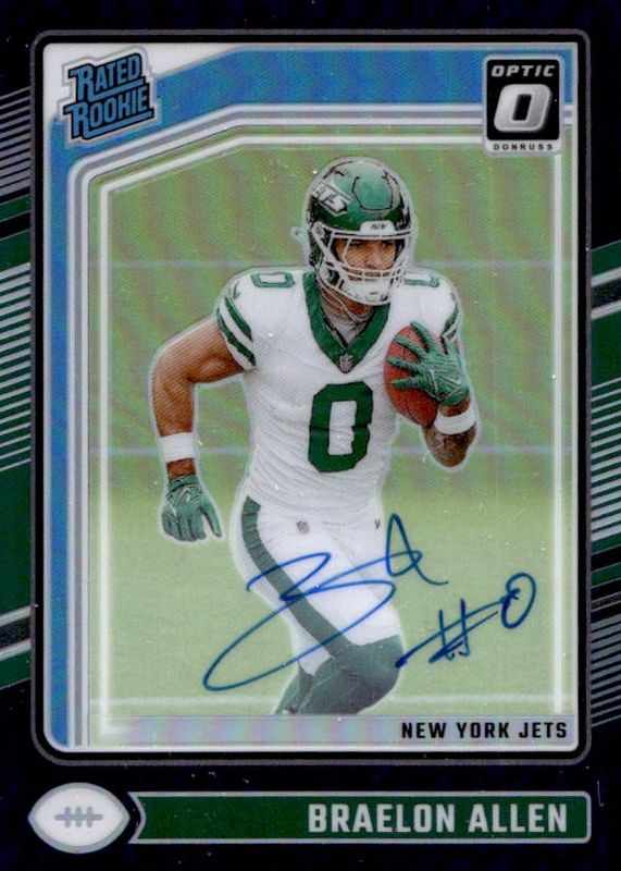 2024 Donruss Optic Braelon Allen Rated Rookie RPS Auto Purple #13/35 Jets