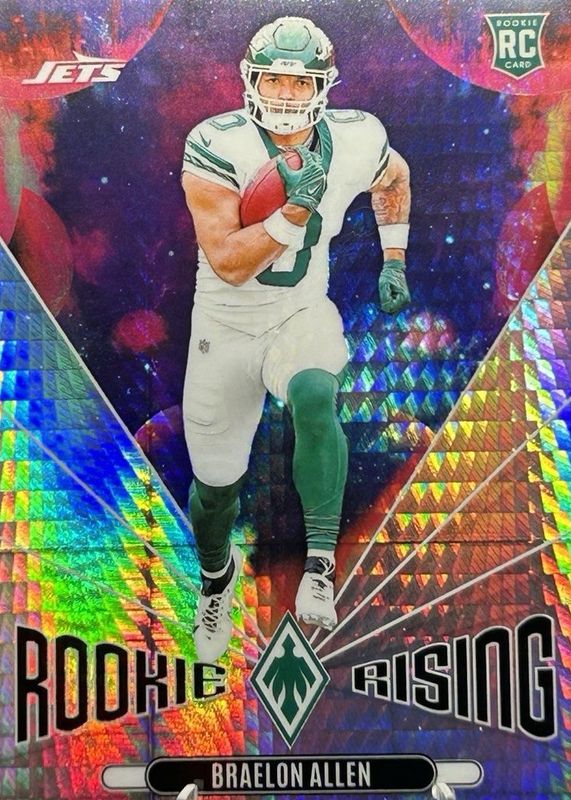 This card is 1 of 19 Braelon Allen's card variations in the 2024 Phoenix set being tracked by Sports Card Investor, including Rookie Rising, Rookie Rising - Lazer, Rookie Rising - Orange, Rookie Rising - Pandora, and Rookie Rising - Purple.