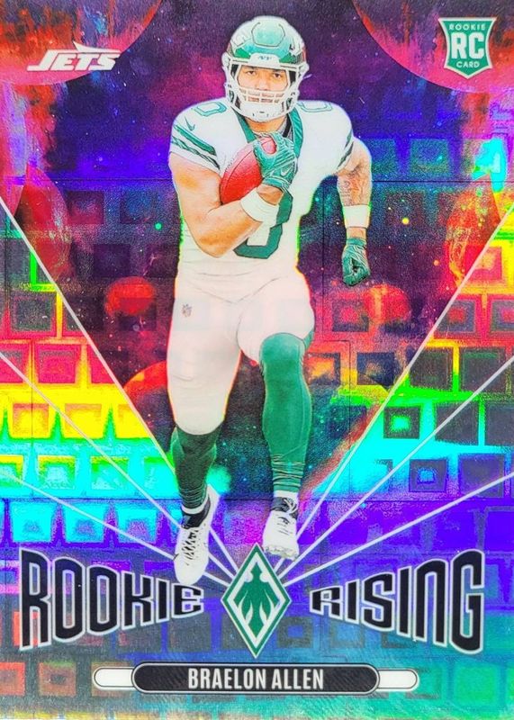 This card is 1 of 19 Braelon Allen's card variations in the 2024 Phoenix set being tracked by Sports Card Investor, including Rookie Rising, Rookie Rising - Hyper, Rookie Rising - Lazer, Rookie Rising - Orange, and Rookie Rising - Purple.