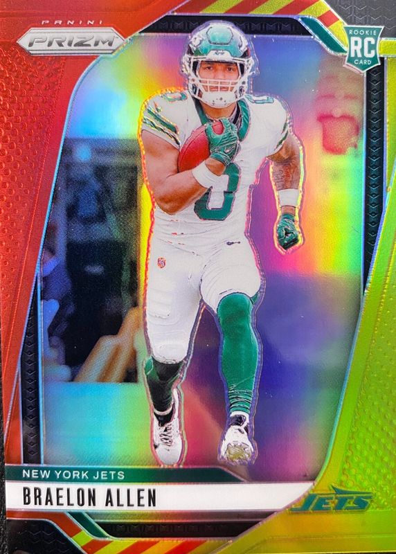 2024 Panini Prizm Red & Yellow #311 Braelon Allen RC Rookie Jets 28/44 HD