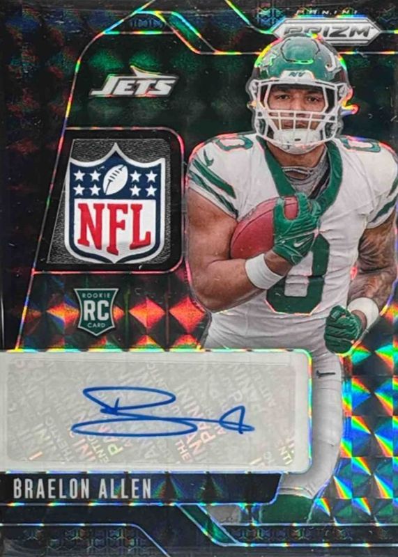 This card is 1 of 114 Braelon Allen's card variations in the 2024 Prizm set being tracked by Sports Card Investor, including Base, Choice Blue Yellow Green, Choice Silver, Disco, and Green.