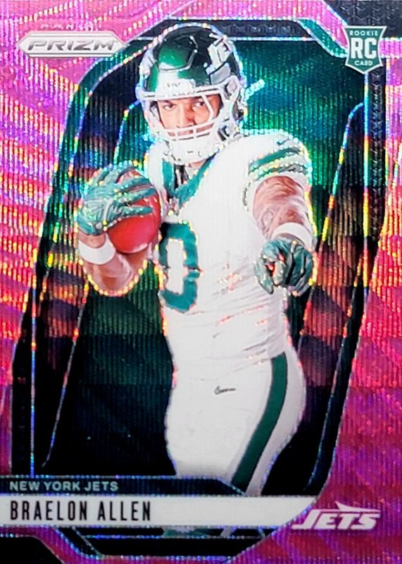 The Braelon Allen 2024 Prizm #6 Rookie Variation - Pink Wave card in Raw condition has not changed in price in the last 30 days and was last sold for $7.99 .