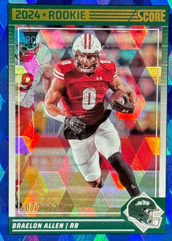 This card is 1 of 25 Braelon Allen's card variations in the 2024 Score set being tracked by Sports Card Investor, including Base, Gold, Green, Orange, and Purple.