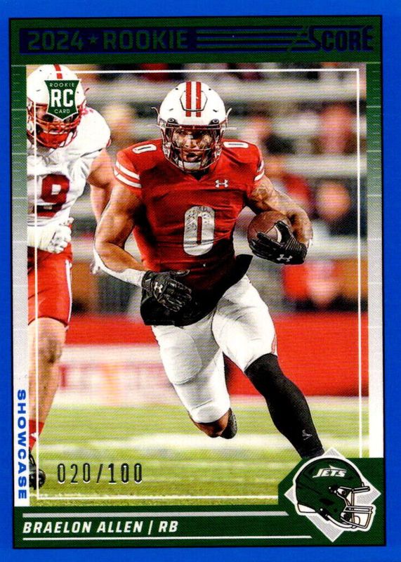 2024 Score Football Braelon Allen /100 RC Showcase #390 New York Jets