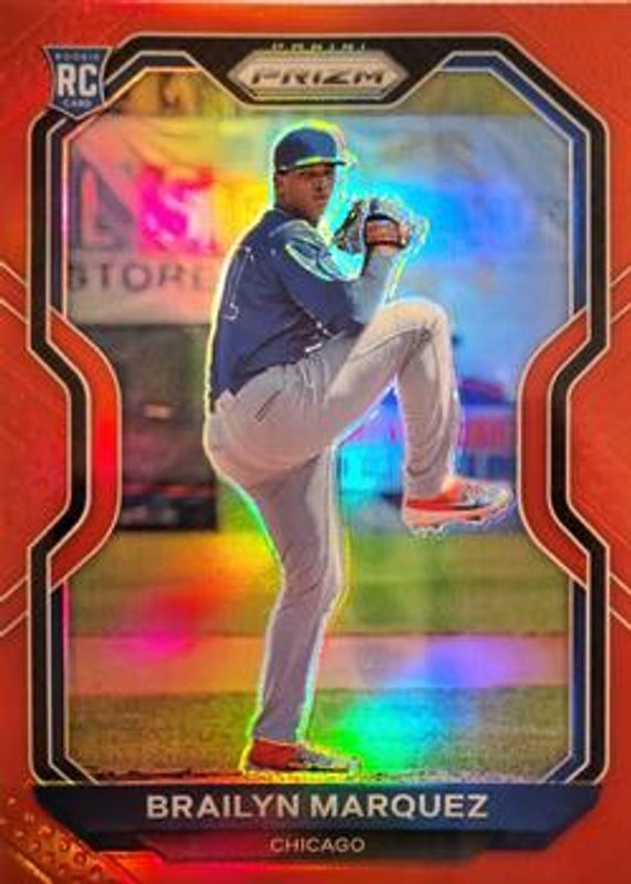 The Brailyn Marquez 2021 Prizm #12 Red Rookie card is 1 of 70 Brailyn Marquez's card variations in the 2021 Prizm set being tracked by Sports Card Investor, including Base, Blue, Blue Velocity, Carolina Blue, and Cosmic Haze.