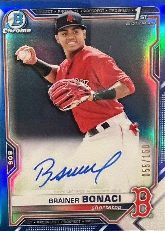 Brainer Bonaci 2021 Bowman #CPA-BB Chrome Prospect Auto - Blue Refractor /150 (1st) Rookie RAW Price Guide