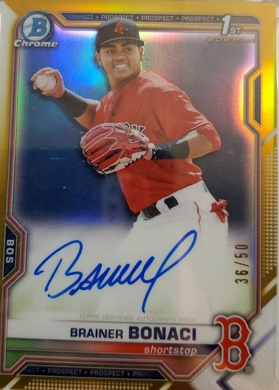 Brainer Bonaci 2021 Bowman #CPA-BB Chrome Prospect Auto - Gold Refractor /50 (1st) Rookie RAW Price Guide