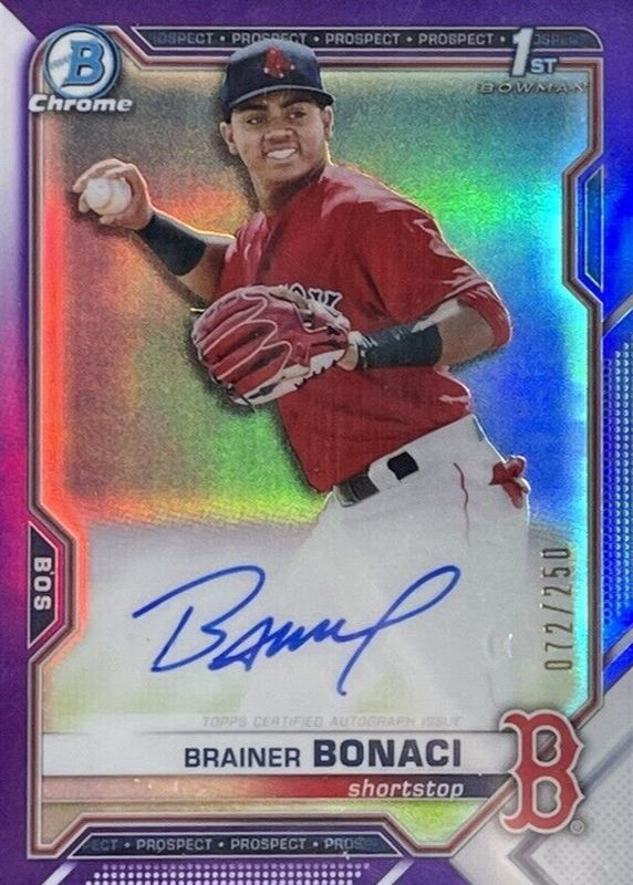 2021 Bowman Chrome Prospects Auto Purple Refractor Brainer Bonaci /250 Red Sox