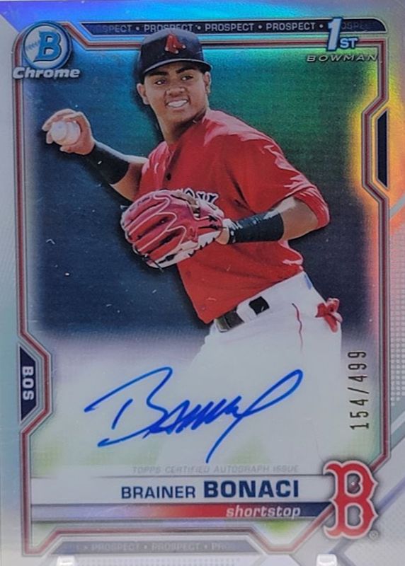2021 Bowman Brainer Bonaci Chrome Auto 1st Prospect Refractor #/499 Red Sox