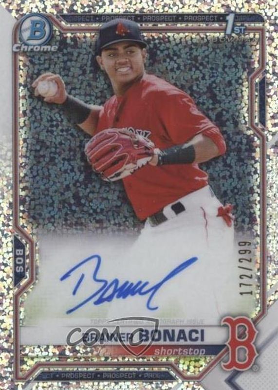 2021 Bowman Brainer Bonaci Chrome Prospect Auto Speckle Refractor #/299 Red Sox