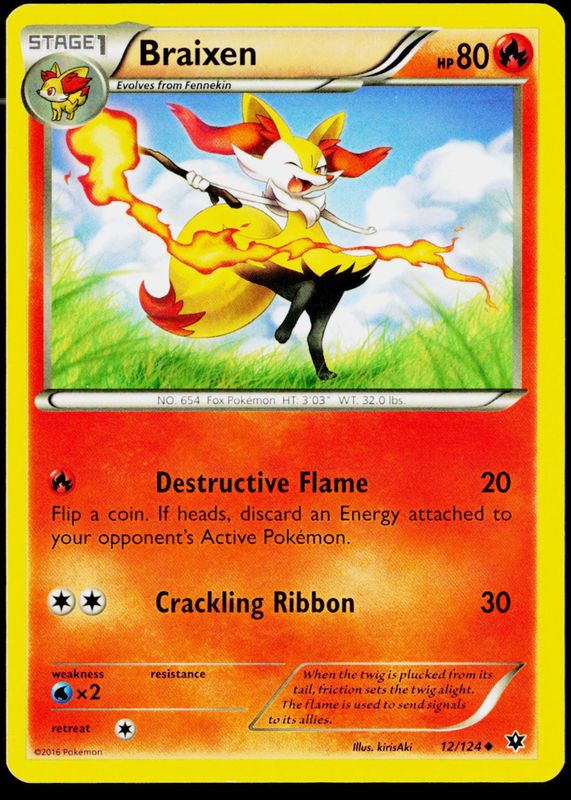 Braixen 2016 XY: Fates Collide #012/124 Base RAW TCG (LIGHTLY PLAYED) Price Guide