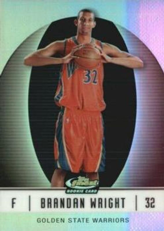 The Brandan Wright 2006 Topps Finest #108 Silver Refractor /319 card is 1 of 14 Brandan Wright's card variations in the 2006 Topps Finest set being tracked by Sports Card Investor, including Base /539, X-Fractor /25, Printing Plates Black /1, Printing Plates Cyan /1, and Printing Plates Magenta /1.