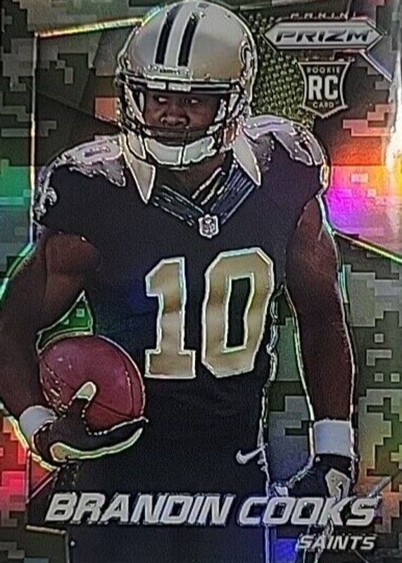 The Brandin Cooks 2014 Prizm #236 Camo Rookie card in Raw condition has not changed in price in the last 30 days and was last sold for $4.99 .