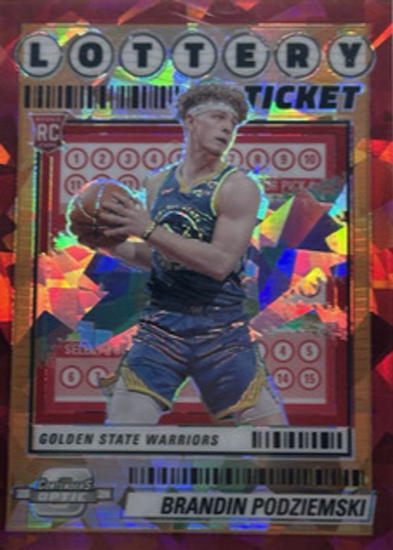 2023-24 Contenders Optic Brandin Podziemski Lottery Ticket Red Ice Rookie #/175