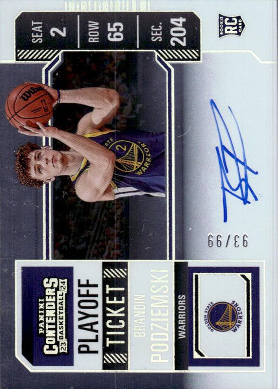 2023 Contenders Brandin Podziemski Playoff Ticket Rookie Variation Auto RC 93/99