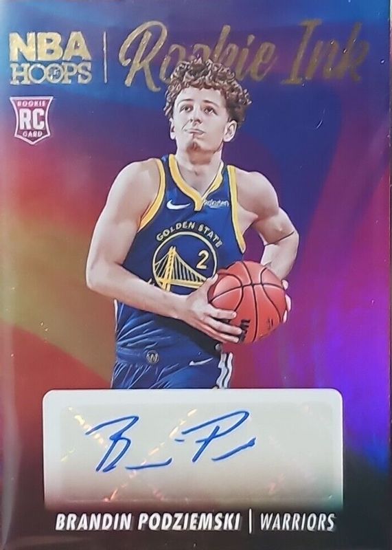 The Brandin Podziemski 2023 Hoops #RI-POD Rookie Ink card in Raw condition has not changed in price in the last 30 days and was last sold for $9.59 .