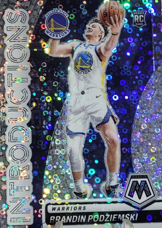 The Brandin Podziemski 2023 Mosaic #16 Introductions - Fast Break Rookie card in Raw condition has not changed in price in the last 30 days and was last sold for $3.99 .