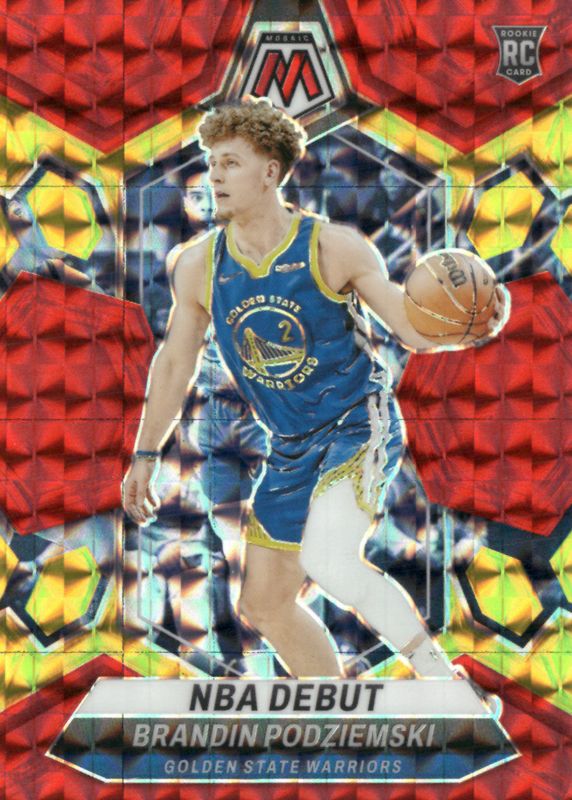 The Brandin Podziemski 2023 Mosaic #266 NBA Debut - Choice Fusion Red & Yellow /75 Rookie card in Raw condition has not changed in price in the last 30 days and was last sold for $3.00 .