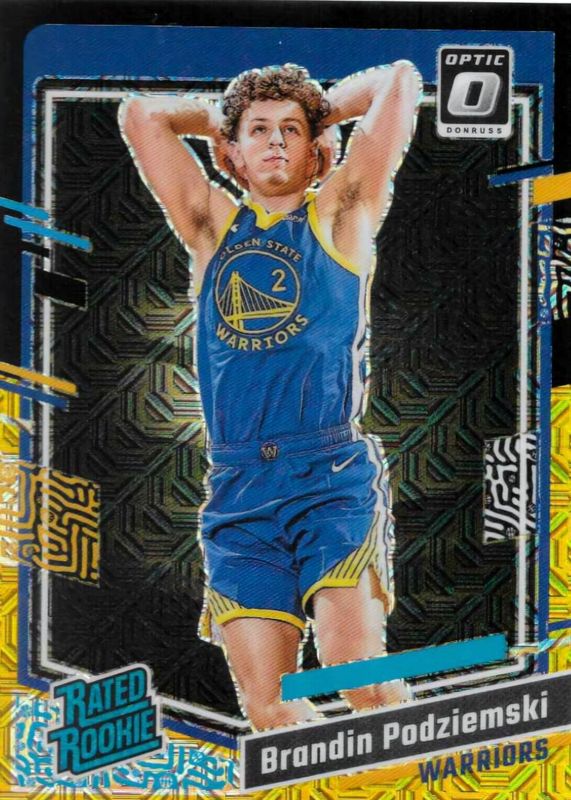 This card is 1 of 90 Brandin Podziemski's card variations in the 2023 Optic set being tracked by Sports Card Investor, including Base, Blue Velocity, Checkerboard, Choice Red & Green, and Fast Break.