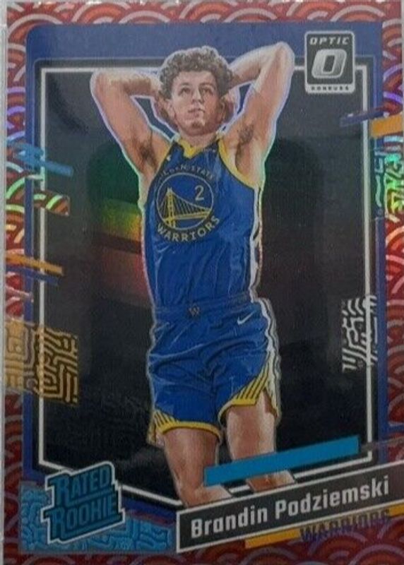 This card is 1 of 114 Brandin Podziemski's card variations in the 2023 Optic set being tracked by Sports Card Investor, including Base, Blue Velocity, Checkerboard, Choice, and Choice Red & Green.