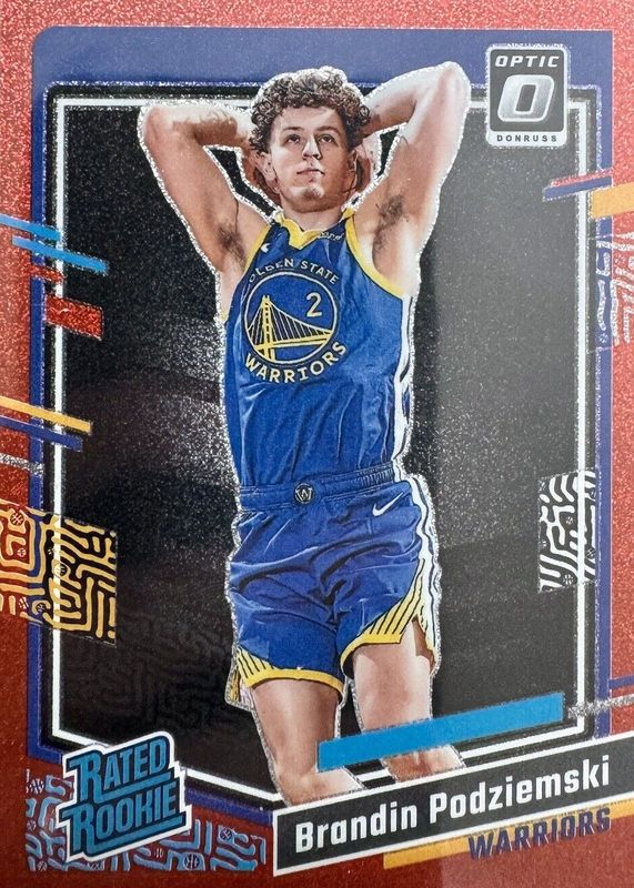 2023 Brandin Podziemski Donruss Optic Red Glitter Rated Rookie RC 27/75 Warriors