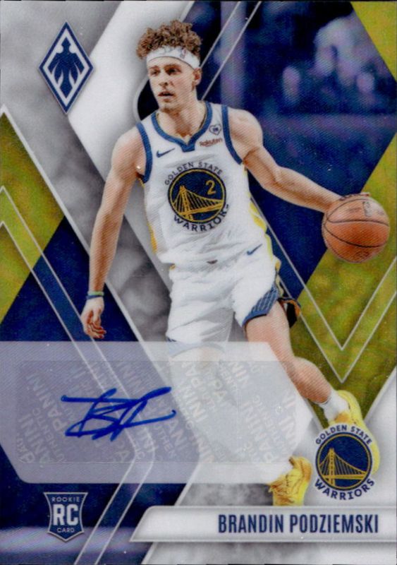 The Brandin Podziemski 2023 Phoenix #PRA-BPZ Rookie Autographs - Yellow /35 card is 1 of 177 Brandin Podziemski's card variations in the 2023 Phoenix set being tracked by Sports Card Investor, including Base, Blue Ice, Color Burst, Dream Weaver, and Hieroglyphs.