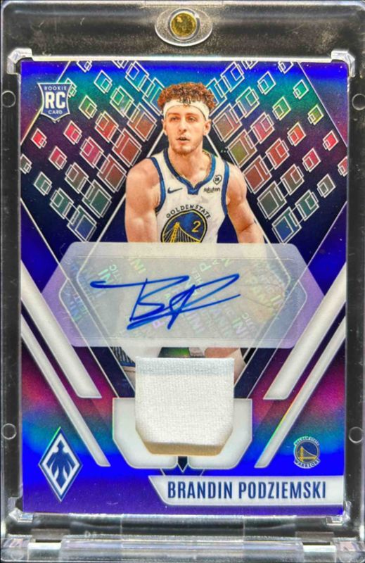 The Brandin Podziemski 2023 Phoenix #RJA-BPZ Rookie Jersey Autographs - Purple /99 card is 1 of 177 Brandin Podziemski's card variations in the 2023 Phoenix set being tracked by Sports Card Investor, including Base, Blue Ice, Color Burst, Dream Weaver, and Hieroglyphs.