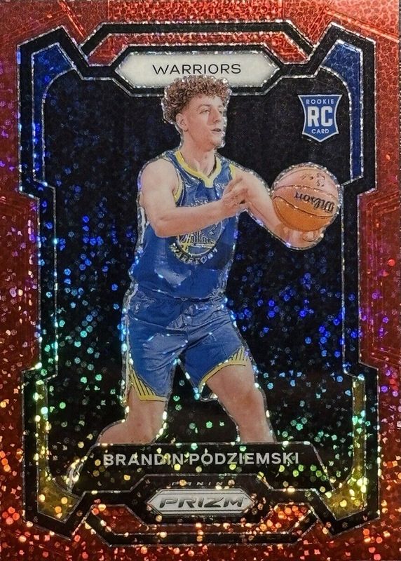 Brandin Podziemski 2023-24 Prizm Red Sparkle Prizm Rookie Card, Warriors #147