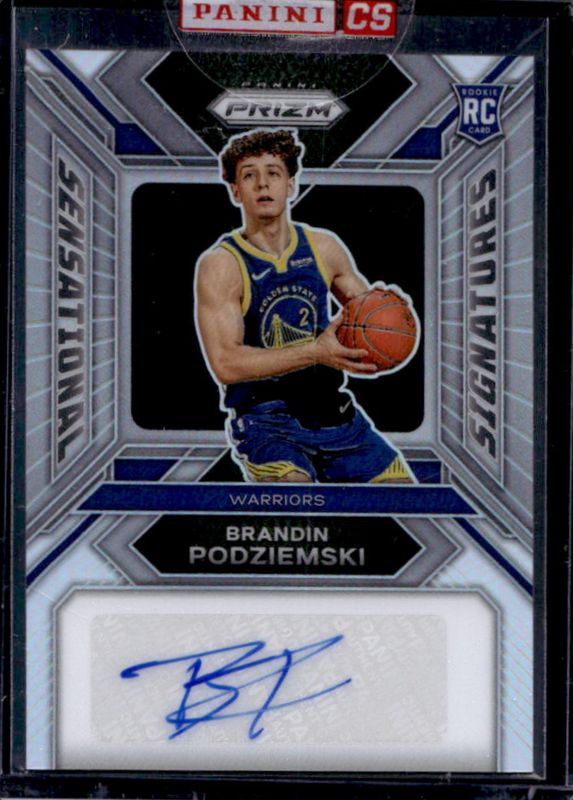 The Brandin Podziemski 2023 Prizm #SS-PO Sensational Signatures - Silver Rookie card is 1 of 106 Brandin Podziemski's card variations in the 2023 Prizm set being tracked by Sports Card Investor, including #147b Base, #147 Base, #147 Blue Wave, #147 Choice Blue Yellow Green, and #147b Fast Break.