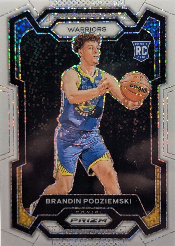 2023/24 Panini Prizm Brandin Podziemski #147 White Sparkle Rookie Warriors