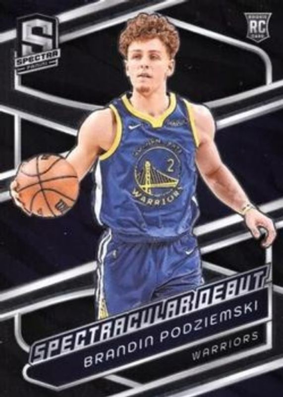 The Brandin Podziemski 2023 Spectra #199 Base Rookie card is 1 of 125 Brandin Podziemski's card variations in the 2023 Spectra set being tracked by Sports Card Investor, including #146 Base, #244 Base, #199 Spectacular Debut, #244 International, and #146 International.