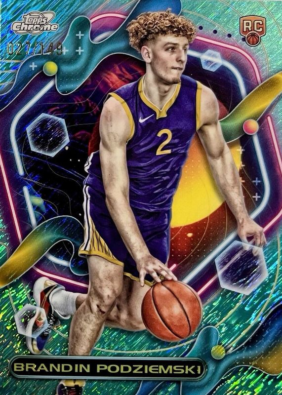 This card is 1 of 25 Brandin Podziemski's card variations in the 2023 Topps Chrome Cosmic set being tracked by Sports Card Investor, including Base, Nucleus Refractor, Pink Galaxy Refractor, Refractor, and White Hole Refractor.