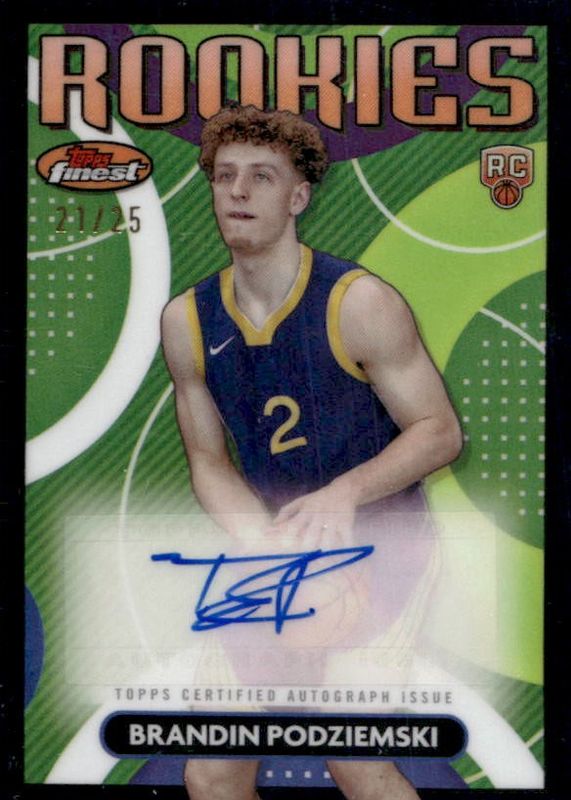 The Brandin Podziemski 2023 Topps Finest #RFA-BP Rookie Finest Autographs - Black Refractor /25 card in Raw condition has not changed in price in the last 30 days and was last sold for $3.25 .