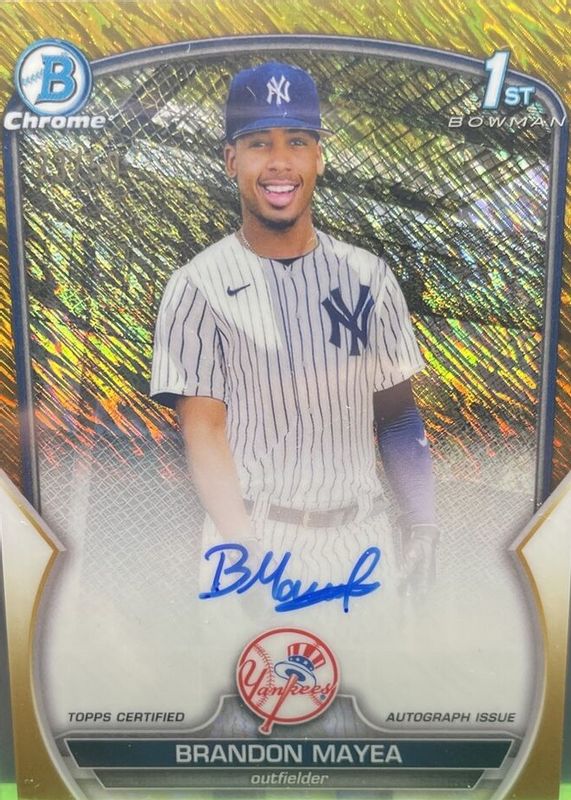 2023 Bowman Chrome Brandon Mayea 1st Prospect Gold Shimmer Auto 23/50 Yankees