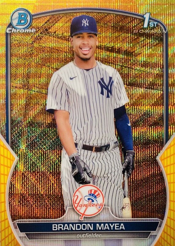 2023 Bowman Chrome Brandon Mayea Yellow Orange Vapor Wave Refractor 1st #74/75